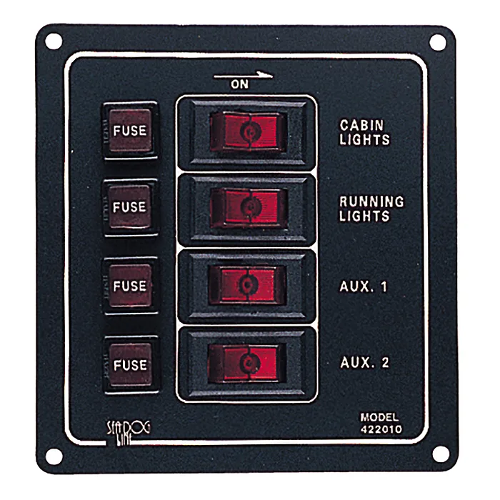 - Four illuminated SPST On/Off rocker switches