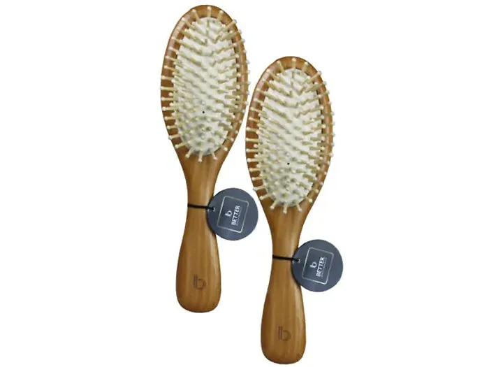 This set of two Oval Paddle Hairbrushes is designed for comfort and care. With wood pins that are gentle on sensitive scalps, these brushes are perfect for use on wet hair after a shower. The natural wood construction ensures durability while providing a classic look.