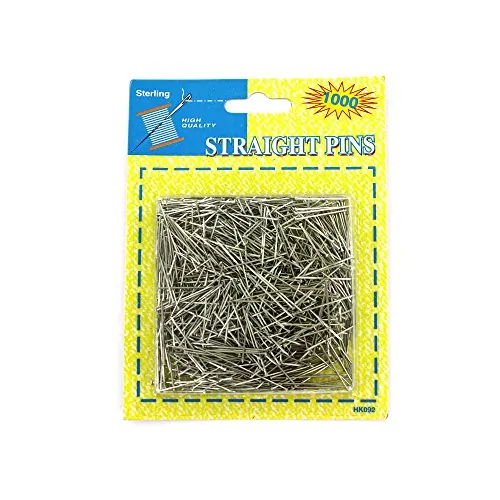 A sewing kit must-have, this 1000-piece Straight Pins Set is perfect for keeping hems in line, pattern pieces together and more. Each pin measures approximately 1" long. Comes packaged in a blister pack.