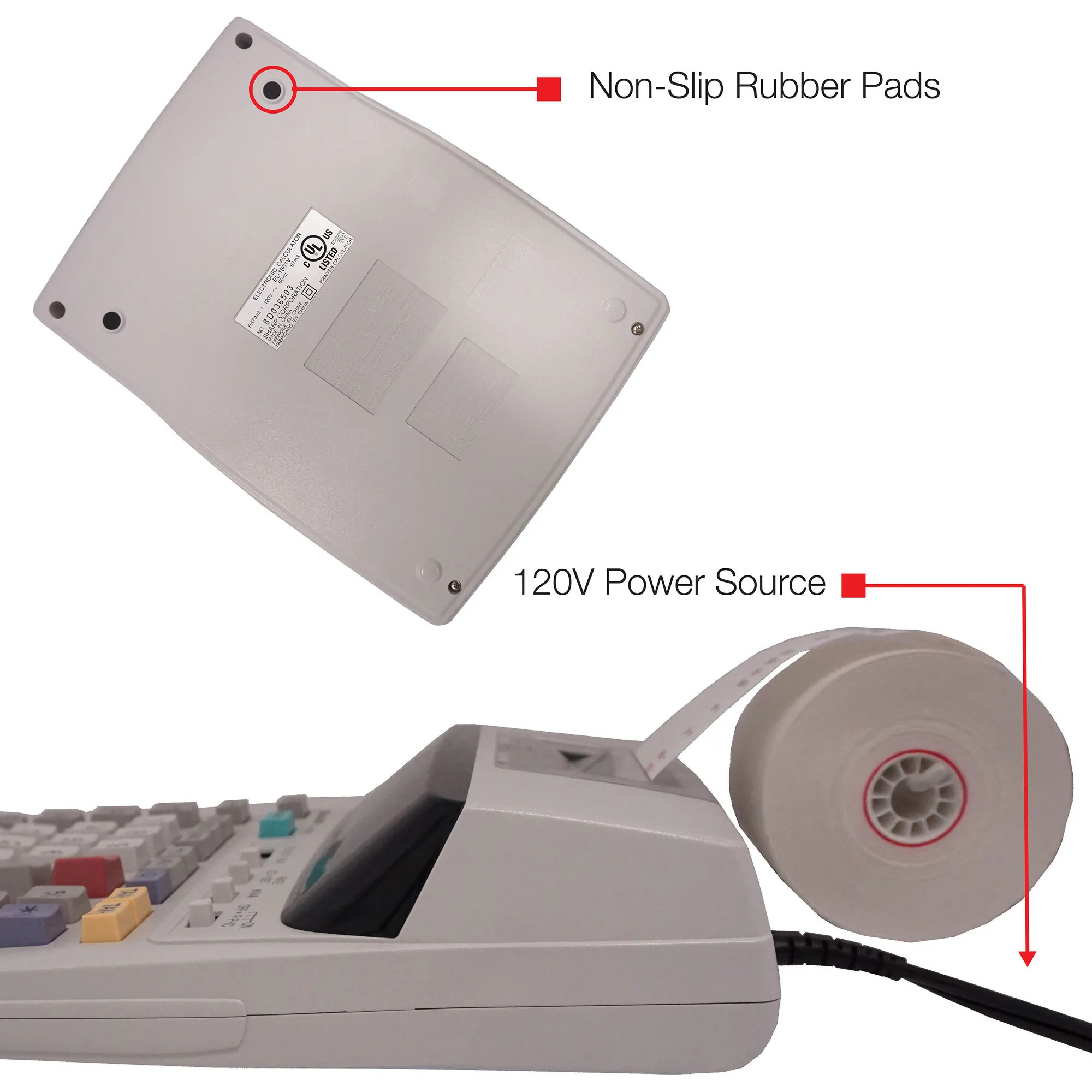 Compact printing calculator is perfect for the occasional user, especially in a small office or home office setting. It features an extra-large fluorescent display with 12 digits (12mm) for easy viewing. You can count on the fast, reliable printing in two colors at 2.5 lines per second. Professional keyboard layout with one-touch change calculation displays and prints the change owed. Cost-sell-margin keys allow quick and easy profit margin calculations. Other functions include four independent memories, average, percent, double zero, decimal setting (F, 6, 3, 2, 1, 0, A), rounding, tax calculation, grand total and subtotal key.