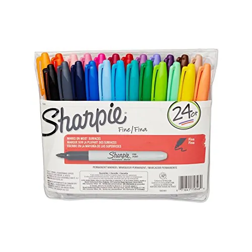 Sharpie markers allow you to make permanent marks on most hard surface. The fine point provides a clean, neat writing line. Fade-resistant and water-resistant ink further extends multiple project uses. Quick-drying ink formula is nontoxic and alcohol-based. Colors include black, blue, red, green, yellow, purple, brown, orange, berry, lime, aqua, turquoise, magenta, tangerine, olive, navy, burgundy, marigold, plum, lilac, pink, sky, mint and peach.
