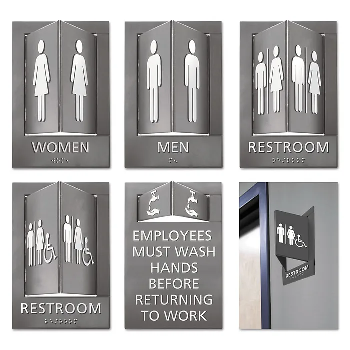 Pop-Out Ada Sign, Men, Tactile Symbol/braille, Plastic, 6 X 9, Gray/white