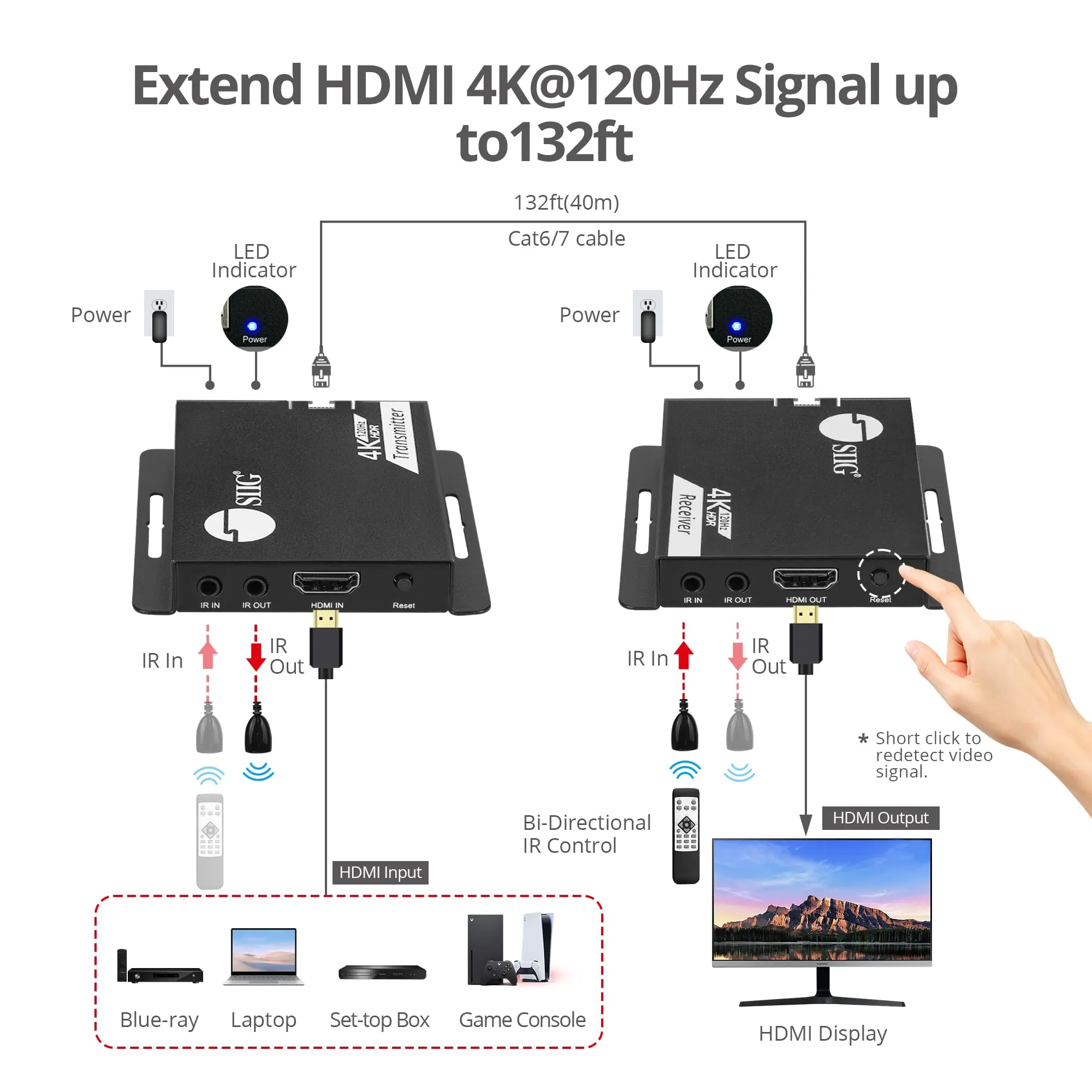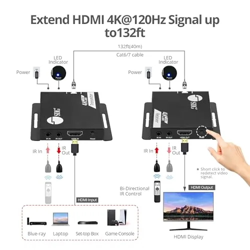 4K@120HZ HDMI EXTENDER, EASILY EXTENDS HDMI 4K@120HZ SIGNALS UP TO 132FT (40M) O