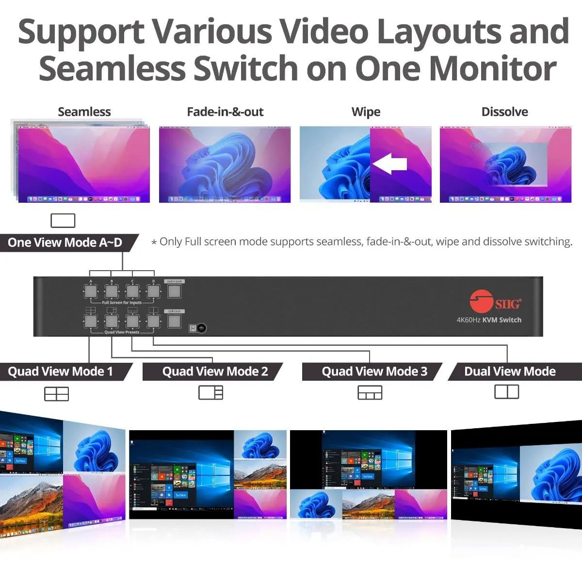 Siig CE-KV0J11-S1 Accessory 4k60hz Quadview Hdmi Mouse Roaming Kvm Processor