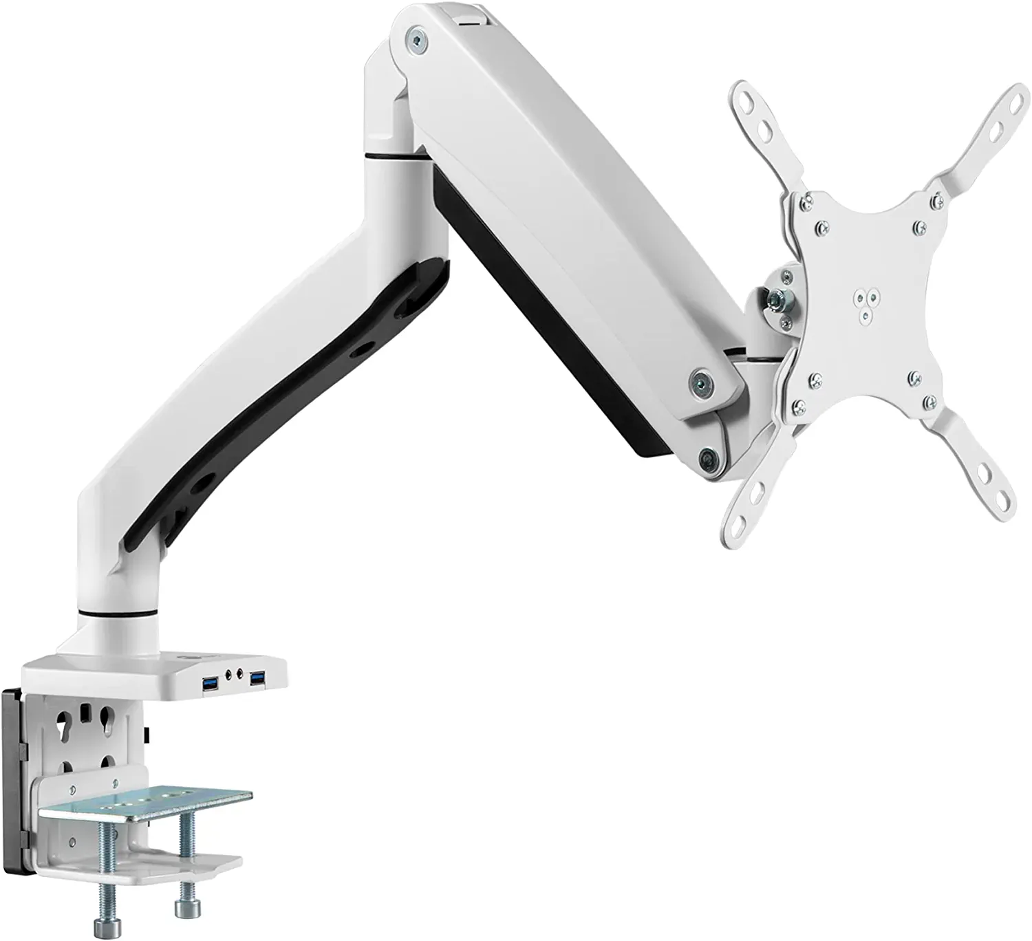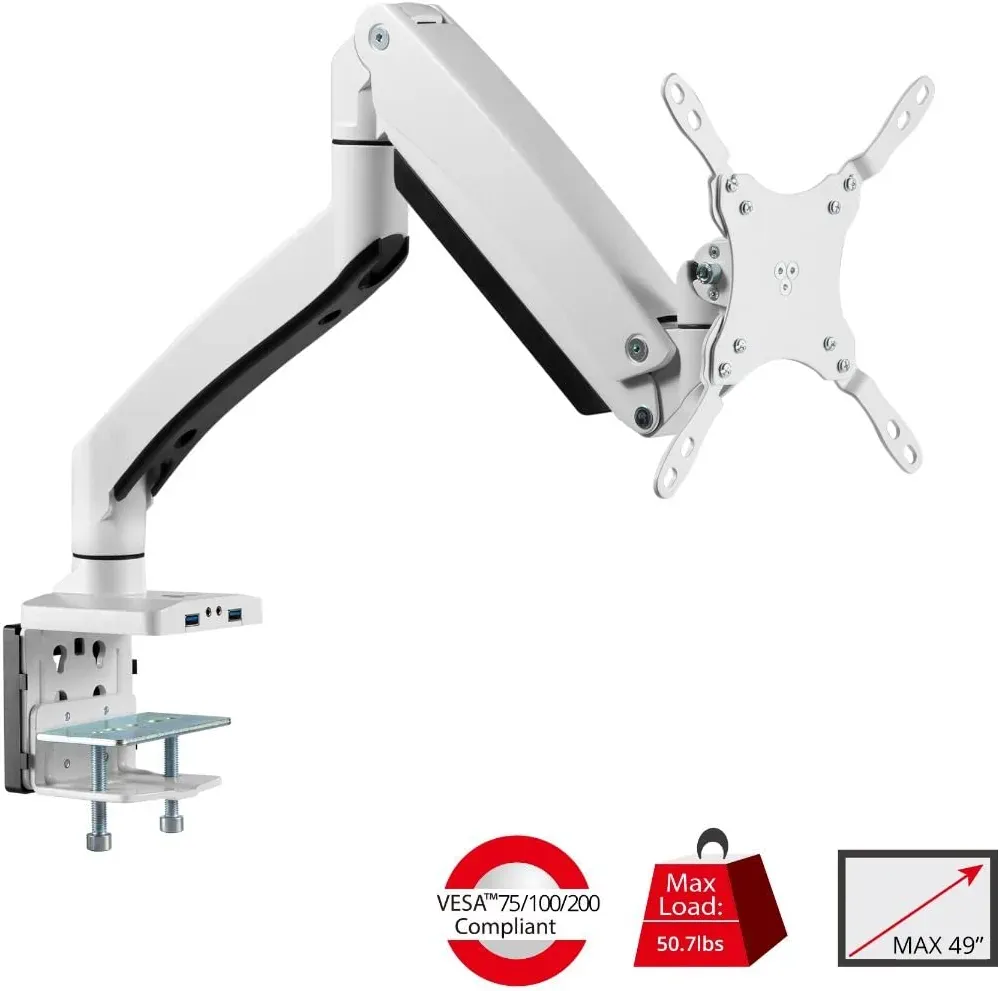 SIIG Single Monitor Desk Mount with Heavy Duty Gas Spring, USB & Audio Ports for 17" to 49" Flat & Curved Screens, VESA, Articulating Monitor Stand (CE-MT3H11-S1)