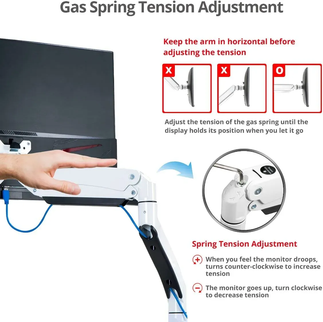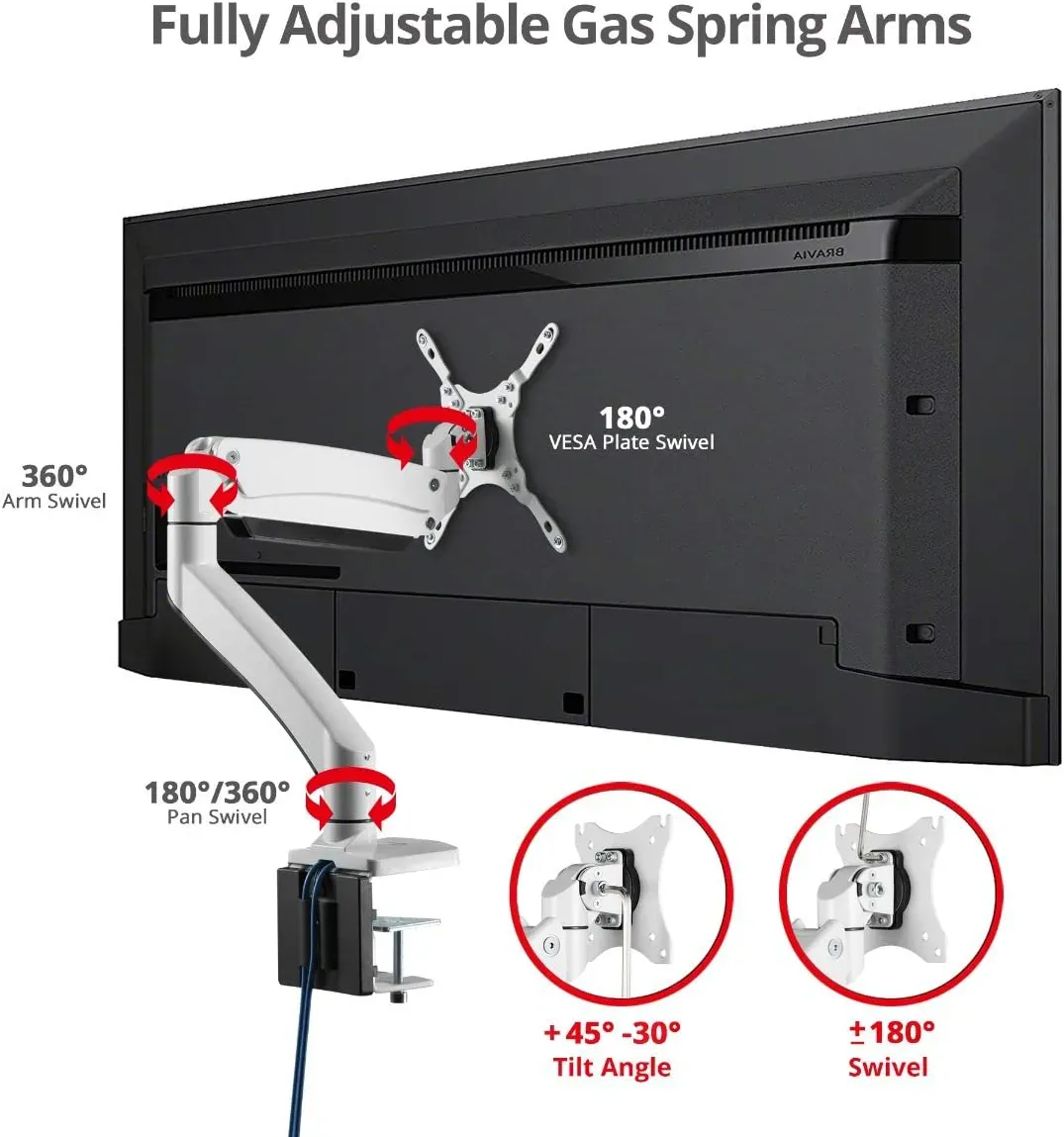 - ✅ Premium Quality Durable Gas Spring - Provides smooth, precise and effortless height adjustment for the perfect viewing angle