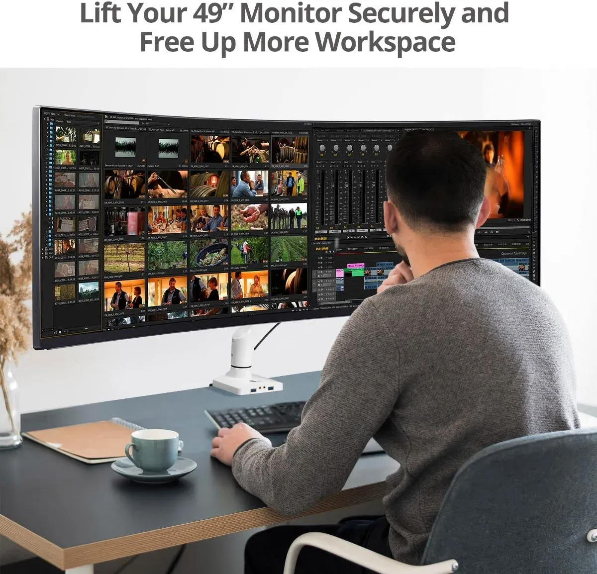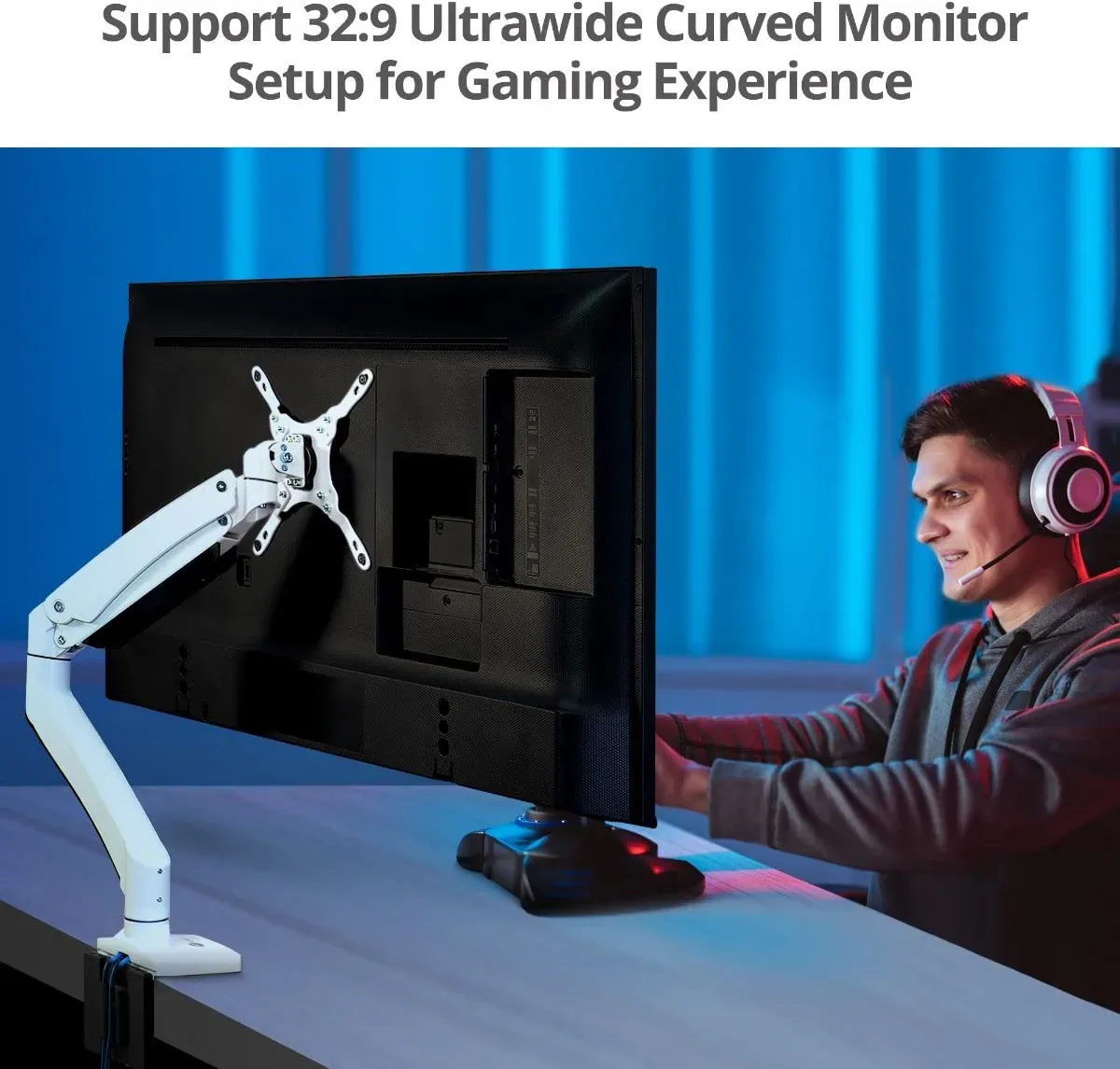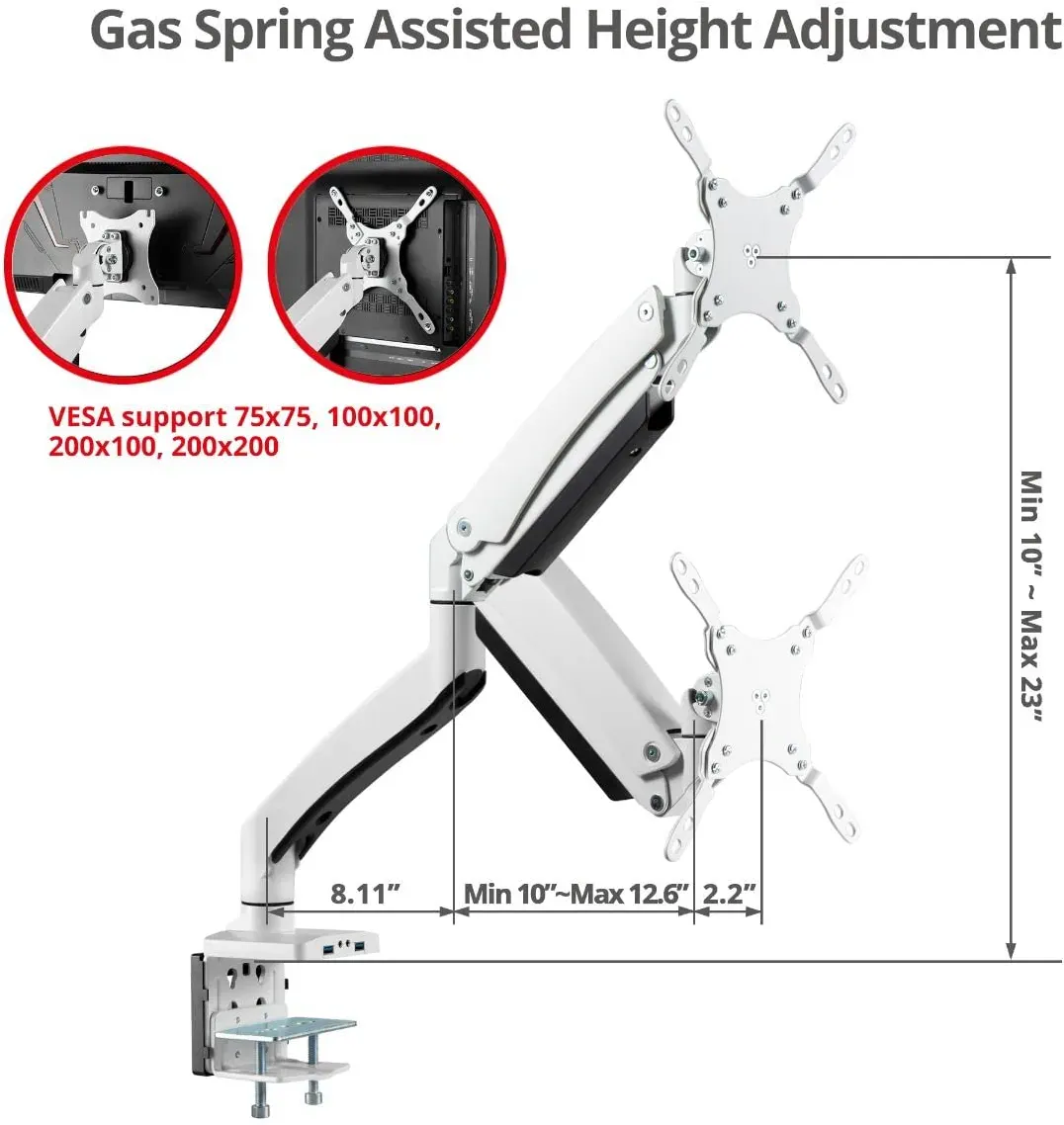 - ✅ Universal fit - Compatible with most 17" to 49" flat and curved monitors has 75 x 75, 100 x 100, 200 x 100 and 200 x 200 mm VESA mounting patterns, Arm supports up to 50.7 Ibs