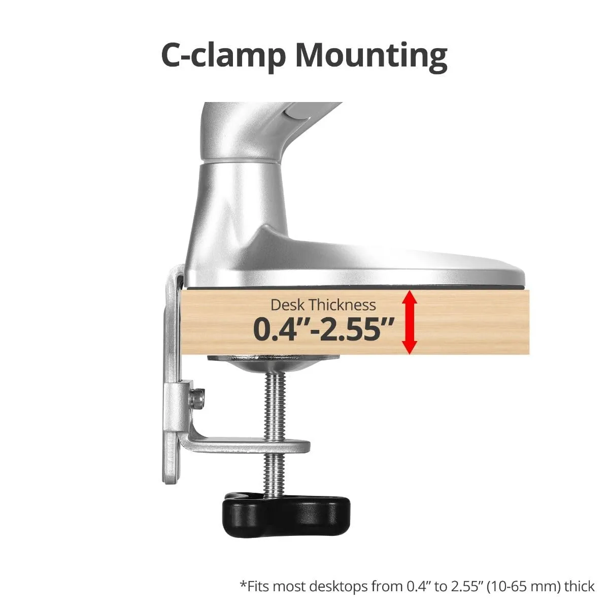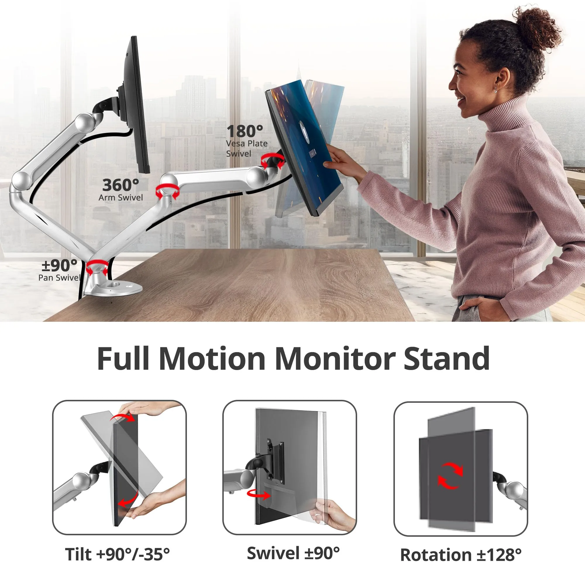 Constructed with high-quality materials, this monitor arm supports a wider range of motion, including tilt, swivel, and height adjustments, accommodating various viewing angles. Its sleek design ensures a clean look while saving valuable desk space.