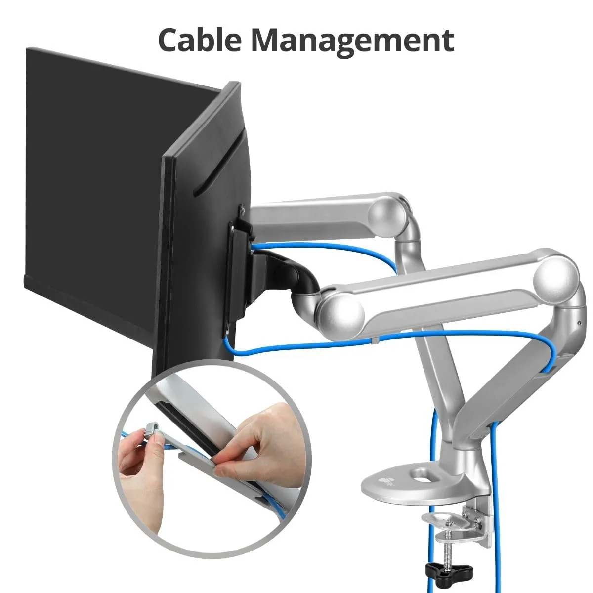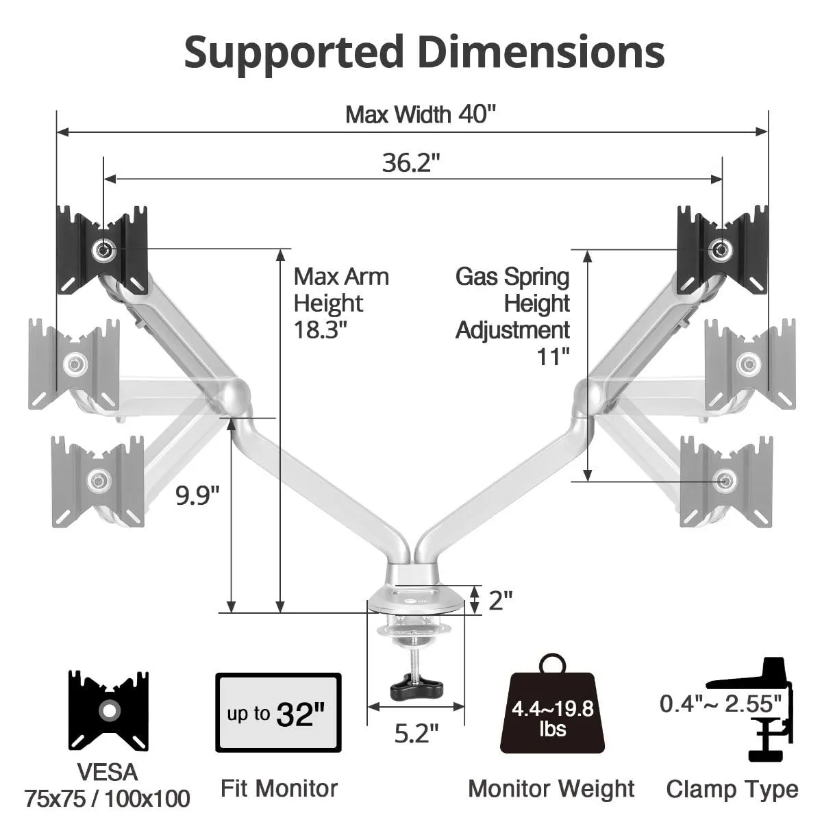 The MTPRO Dual Monitor Gas Spring Desk Mount Arm is designed to provide optimal ergonomic positioning for your monitors. Featuring a dual-arm design, it allows for easy adjustment and positioning of two displays, enhancing your workspace efficiency.