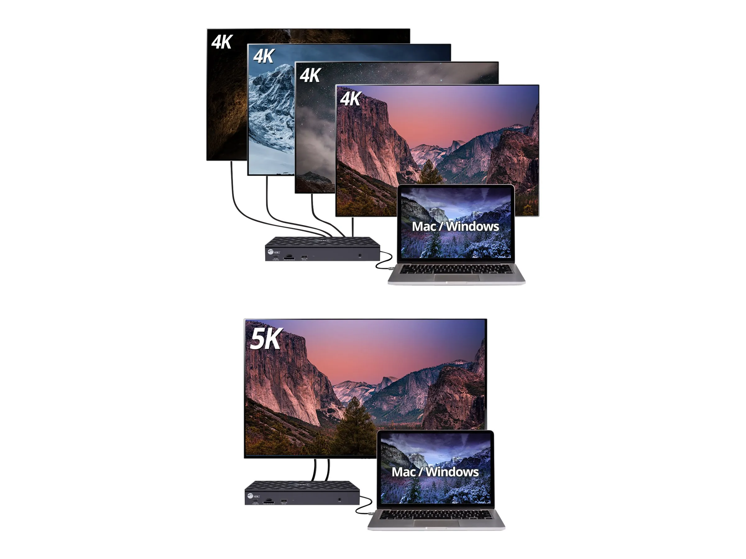 The SIIG USB-C Quad 4K Video Docking Station is designed for both Windows and Mac laptops, offering seamless connectivity and powerful features.