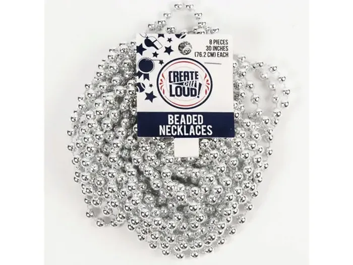 Bulk CH480 Silver Beaded Party Necklaces 8 Pack For Festive Events