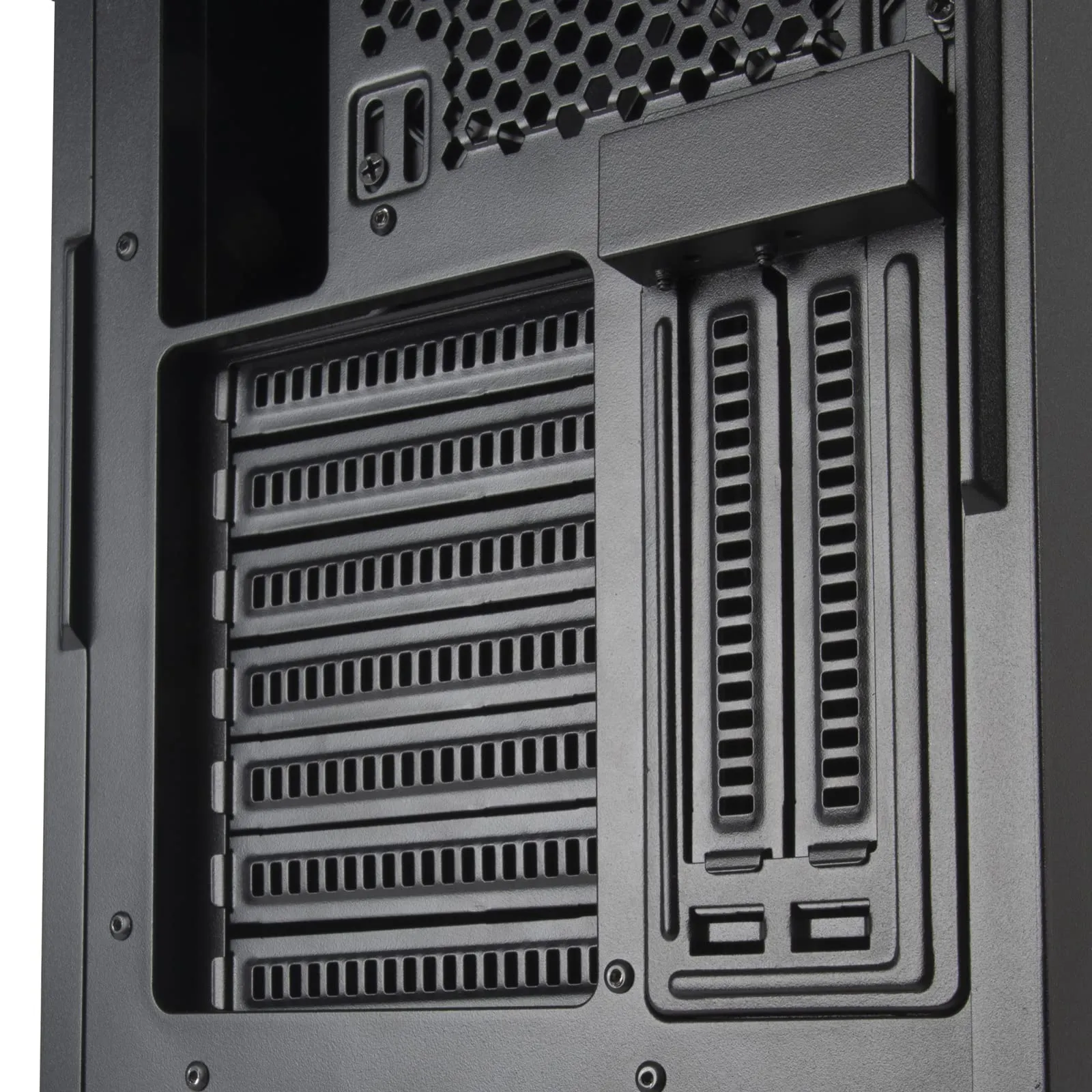 - Spacious interior accommodates large graphics cards