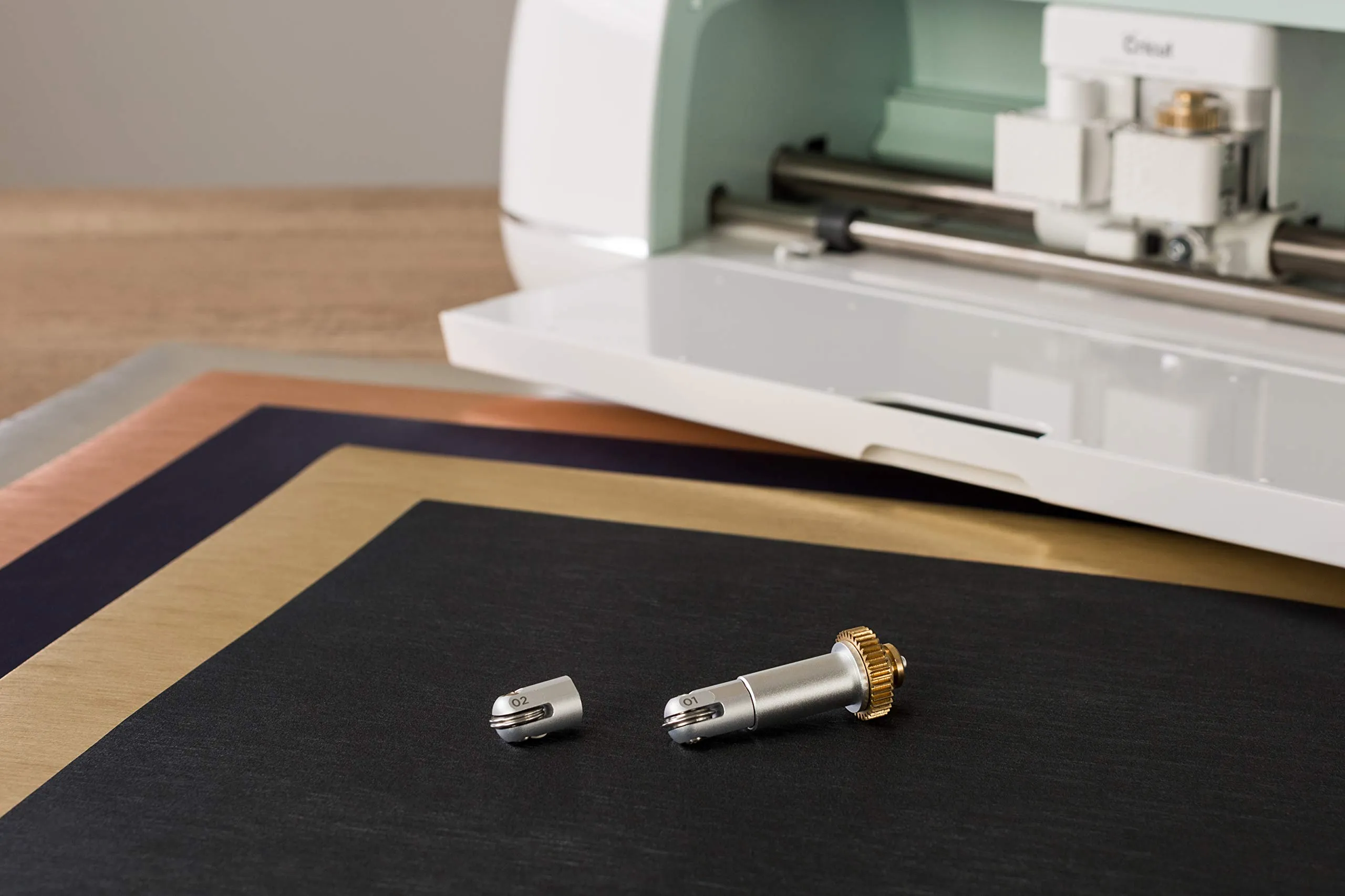 Break creative barriers and make more than ever before with Scoring Wheel. From flawlessly finished tags, cards, and gift boxes to jaw-dropping wearable art, 3D home decor, structures, and more, you'll bring pro-level precision to every possible crease-and-fold project. Get crisp creases in one pass. Make perfect, effortless folds. Rejoice in that flawless finish. With up to 10X more pressure than the Scoring Stylus, the patented wheel design takes on basic materials with ease. Includes the Scoring Wheel and QuickSwap Housing. For use with Cricut Maker machines only. Expand your collection of Cricut Maker tools with a variety of QuickSwap tips. Just swap out Single or Double Scoring Wheel with any other QuickSwap tip, including Engraving Tip, Debossing Tip, Perforation Blade, and Wavy Blade with more on the way. Creates extra-deep score lines for perfect folds and a flawless finish For Cricut Maker machines only. Includes QuickSwap Housing for interchangeable tool use. Create dimensional tags, cards, gift boxes, rosettes, and 3D home decor Perfect for light to medium-weight paper, kraft, glitter, holographic, and up to 80 lb. cardstock, acetate, and more. 1 Single Scoring Wheel. 1 QuickSwap Housing. Avec son angle de lame plus prononcr (60 degrrs contre 45 degres), la Lame pour Drcoupe Profonde permet de couper facilement une grande varirtr de matrriaux plus rpais pour des projets exceptionnels. Crrez des calendriers muraux personnalises en agglomere utilisez des feuilles de caoutchouc pour drcouper vos propres tampons, ou creez des aimants personnalises. Avec la Lame pour Drcoupe Profonde, vous pouvez drcouper la plupart des materiaux jusqu a 1,5 mm d epaisseur, y compris le carton pour affiches, le papier cartonne lourd, et plus encore. L'angle plus prononcr de la lame (60 degres contre 45 degres) tranche la plupart des matrriaux d'une epaisseur pouvant atteindre 1,5 mm Pour les machines Cricut Maker et Cricut Explore Creez des calendriez muraux, des tampons en caoutchouc et des aimants personnalises Parfaite pour du papier cartonnr extra-epais, du papier ondule, du carton, de l'agglomere leger, des feuilles magnrtiques, du feutre raide, les feuilles de mousse, et bien d'autres materiaux.Lame pour points profonds).