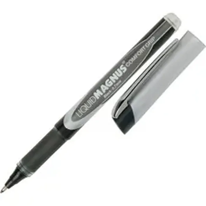Liquid-ink rollerball pens deliver smooth, consistent lines. The sophisticated, liquid ink feed system offers an effortless, skip-free writing experience. The permanent, pigmented ink helps prevent document and check tampering, as the ink cannot be lifted off the paper using common chemicals. Ink reservoir encompasses the whole barrel body for larger ink capacity and longer write-time. The texturized, rubber grip provides great writing control and comfort. Rubber does not contain latex, which causes allergies or phthalate (a potential carcinogen). Fade-proof, waterproof ink lasts over time and is designed for precise writing even through carbon copies. The Liquid Magnus Rollerball Pen also includes a durable, metal pocket clip to attach the pen to notebooks, folders and more.