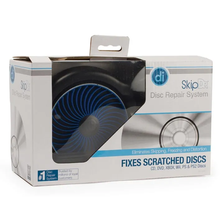 The SKIPDR Manual Disc Repair System is designed to restore the quality of your scratched and damaged CDs and DVDs.