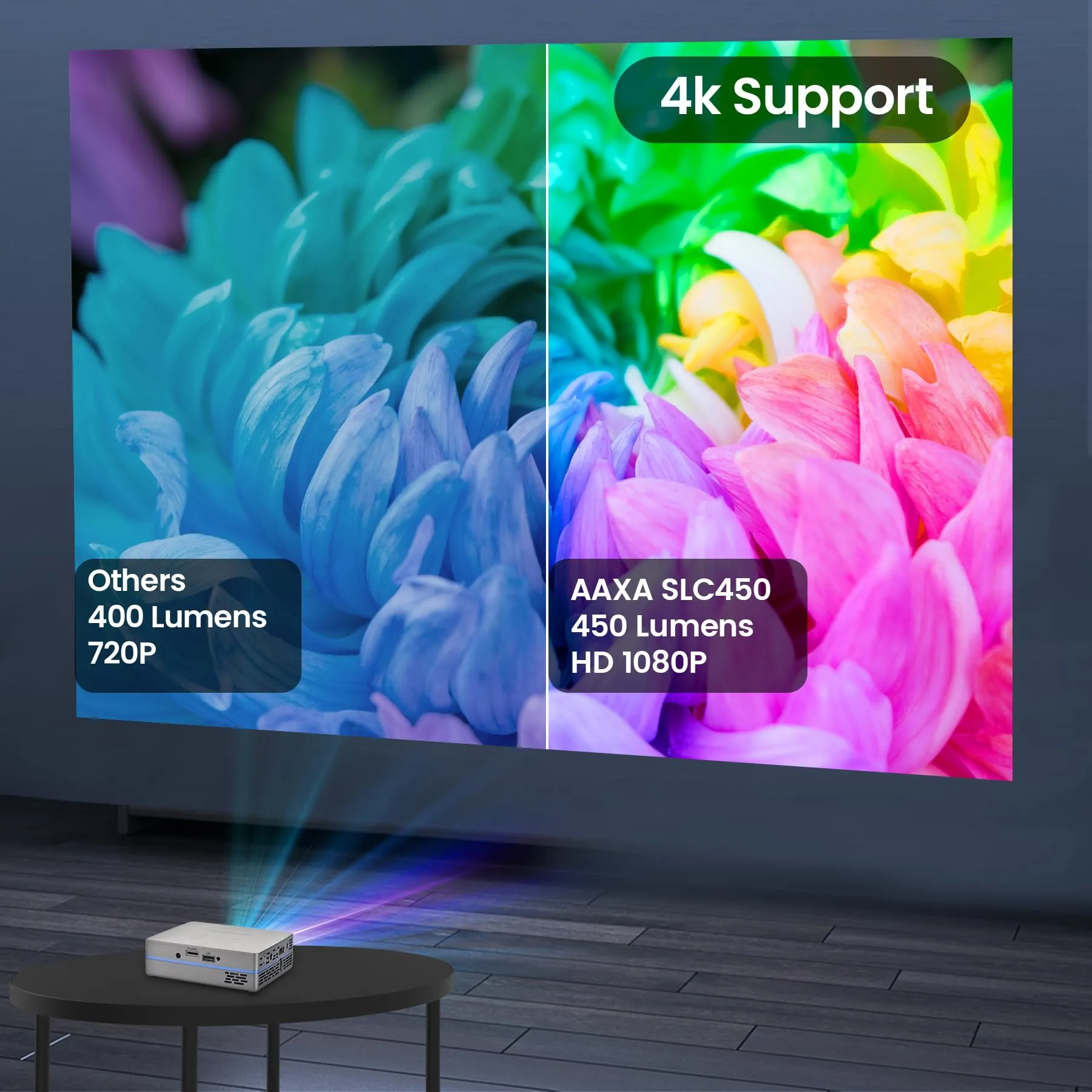 The SLC450 is a high-performance short-throw projector designed for optimal viewing experiences. With its 1080P resolution, it delivers sharp and vibrant images, making it perfect for movies, presentations, and gaming.