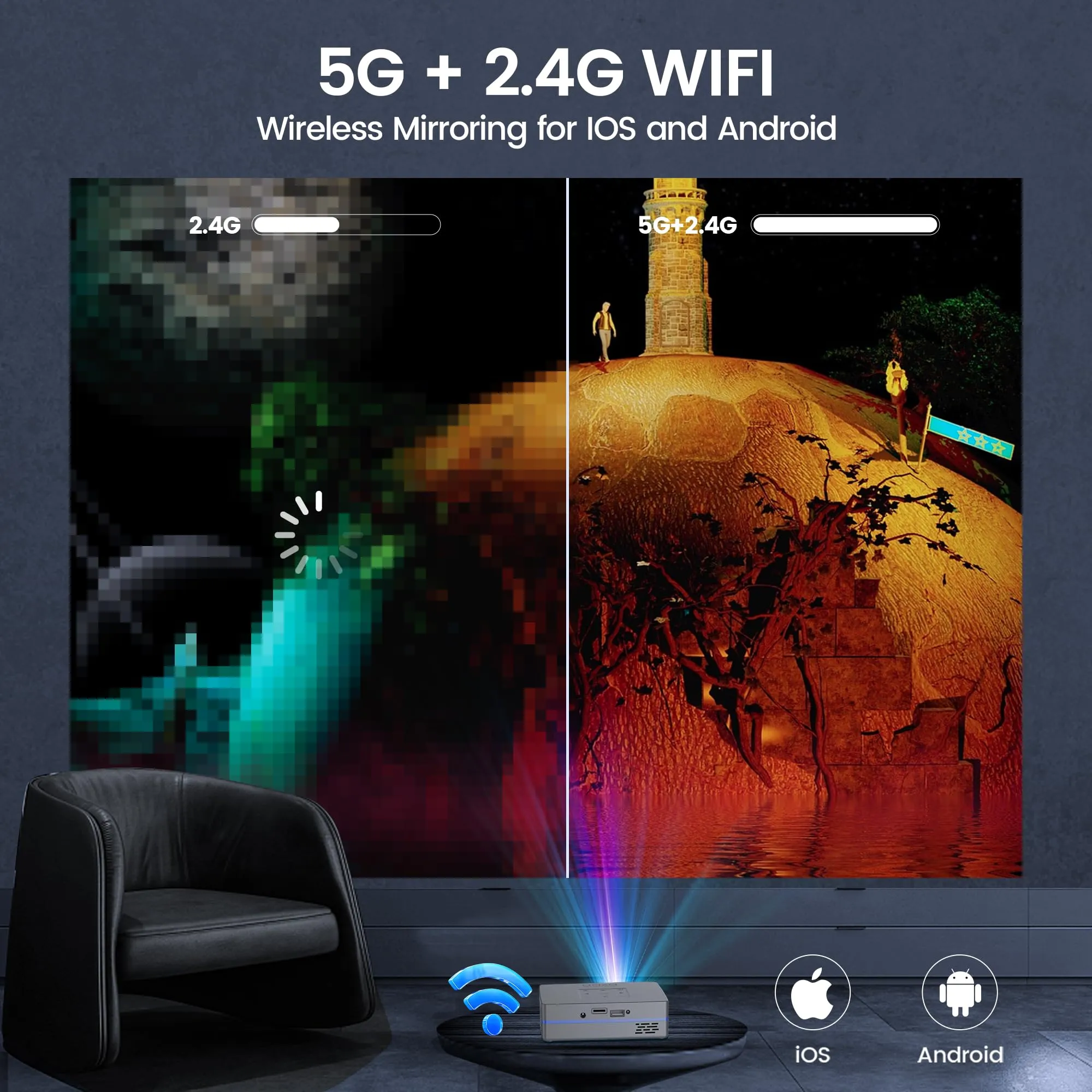 Equipped with smart Wi-Fi and Bluetooth capabilities, it allows for seamless mirroring and connectivity with Android devices.
