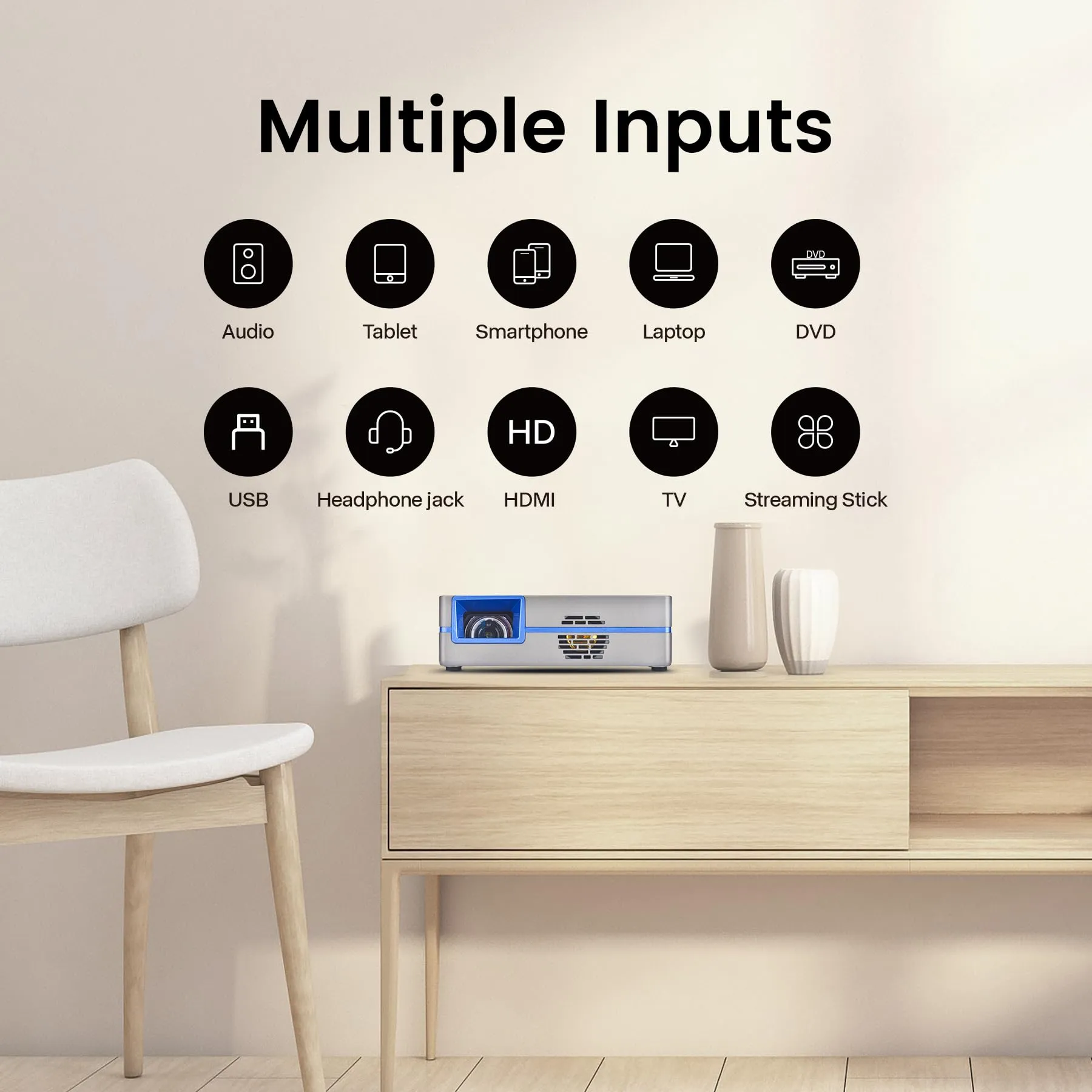 Its compact design makes it an ideal choice for small spaces while still providing a large screen experience.