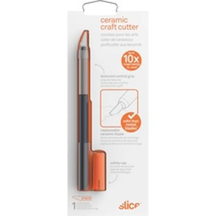 Weighted for balance and stability, this craft knife allows you to make accurate, delicate cuts with excellent precision. The extremely hard, ceramic blade provides a lasting sharp edge that maintains its sharpness up to 11 times longer than an equivalent metal blade for consistently smooth cuts again and again. Textured, anti-slip grip ensures you always keep a firm grip for accurate cuts. Ambidextrous design provides a comfortable grip for both left-handed and right-handed users. Easy, no-tool blade change allows you to simply replace dull blades without requiring any extra tools. No-roll design prevents rolling on smooth, slanted surfaces for enhanced safety. Craft knife includes one rounded-tip ceramic blade and is perfect for precision cutting, scraping, and handling.