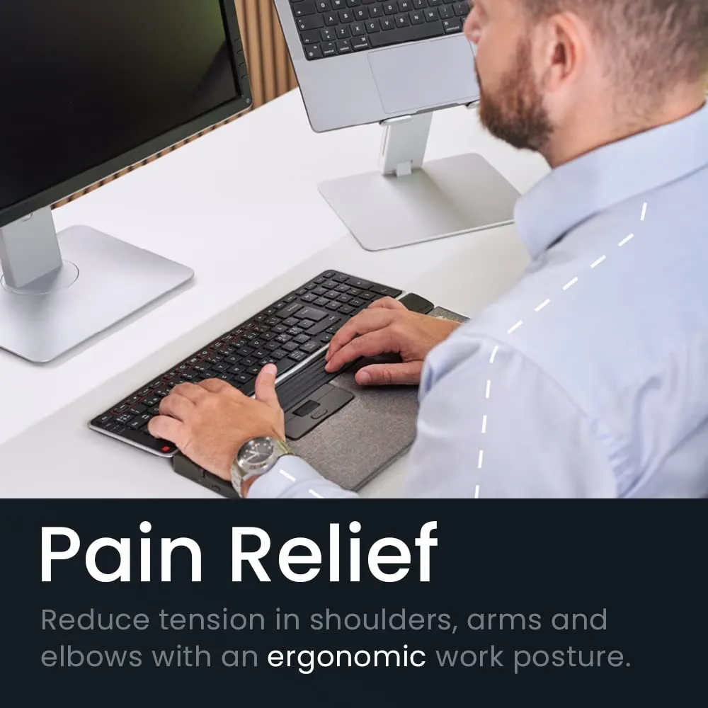 The Slim Wireless Slider Mouse offers a sleek design with an ergonomic wrist rest in light grey, ensuring comfort during prolonged use. Its wireless connectivity provides flexibility and convenience for any workspace.