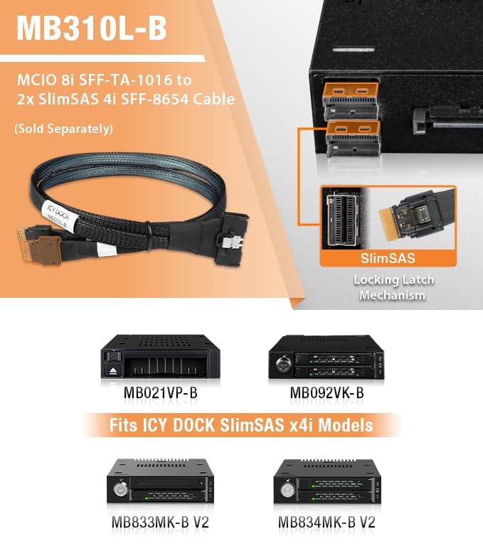 Icy MB310L-B Slimsas 4i Sff8654 0.5m Cable