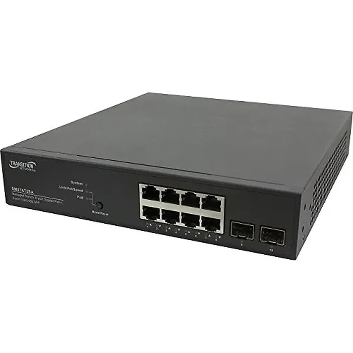 Transition Networks SM8TAT2SA-NA - Switch - managed - 8 x 10/100/1000 (PoE+) + 2 x 100/1000 SFP - desktop - PoE+ (130 W) - AC 100 - 240 V