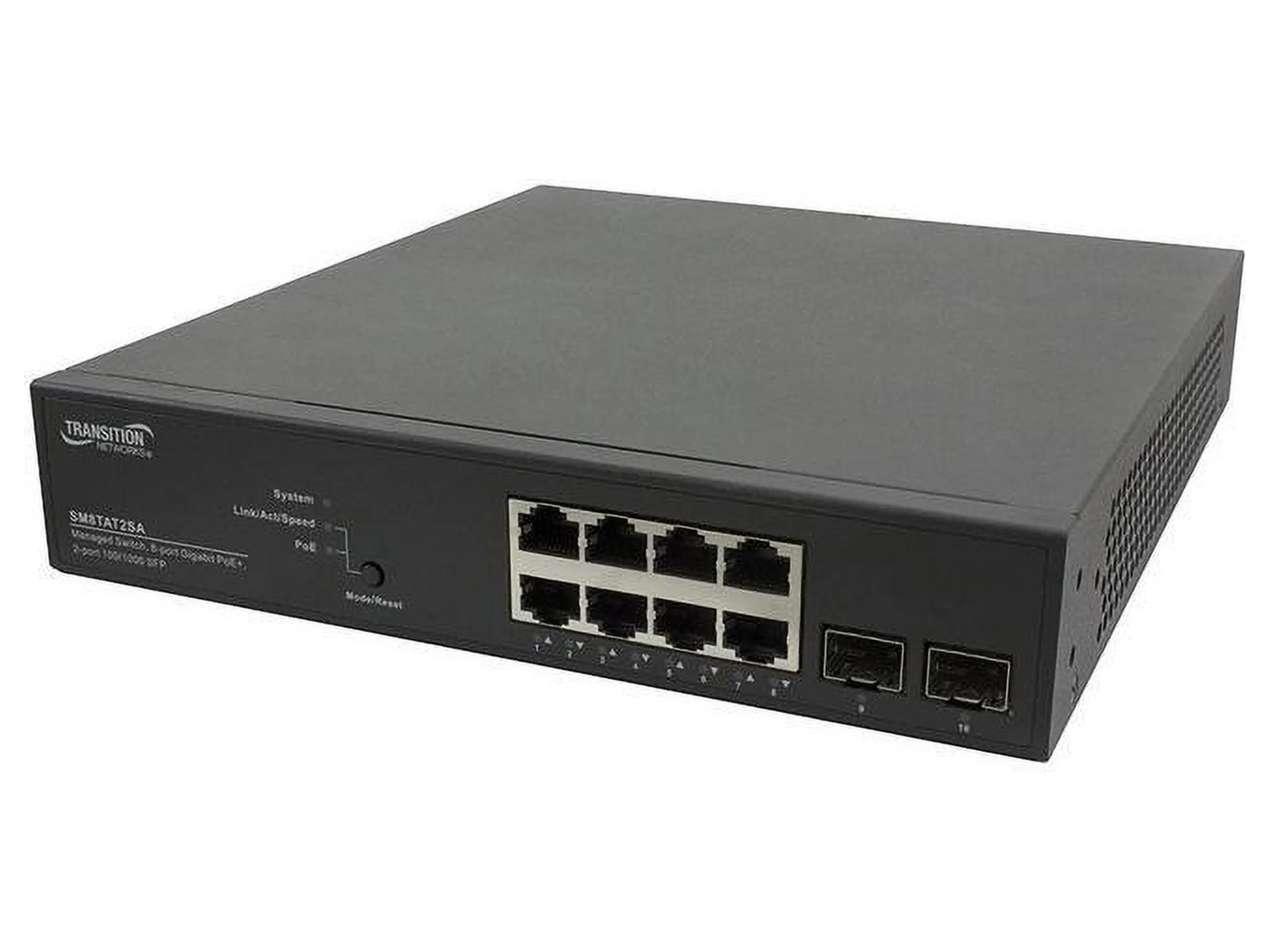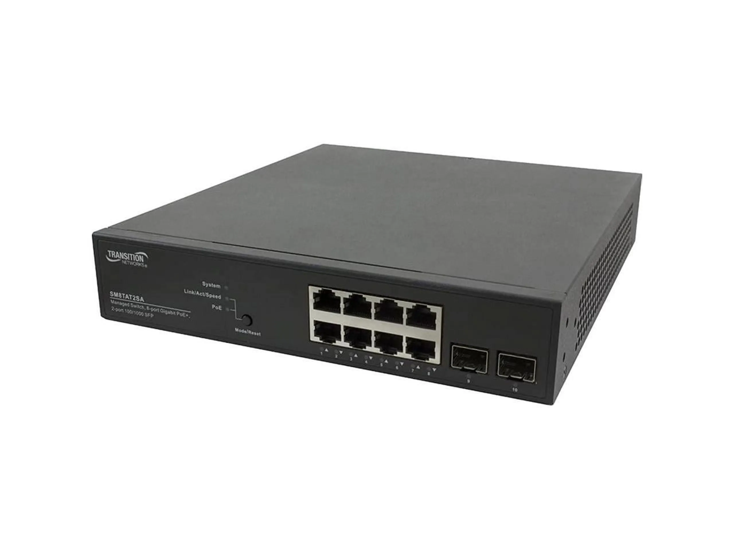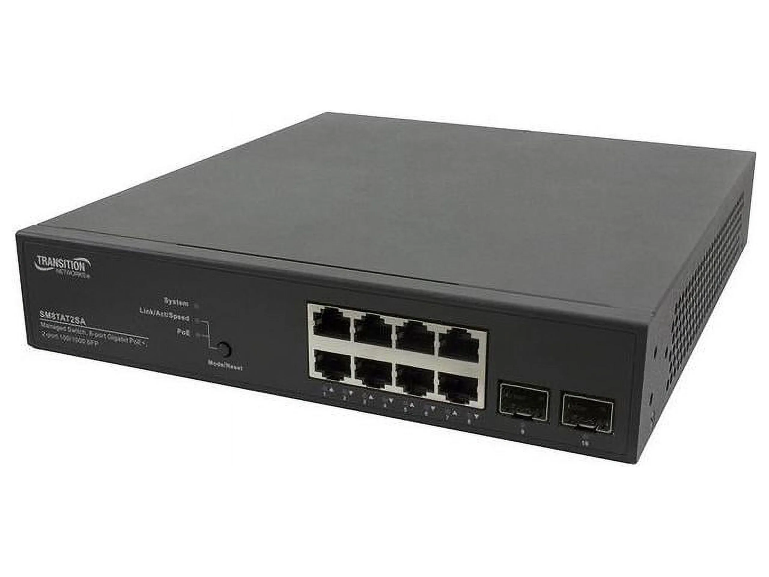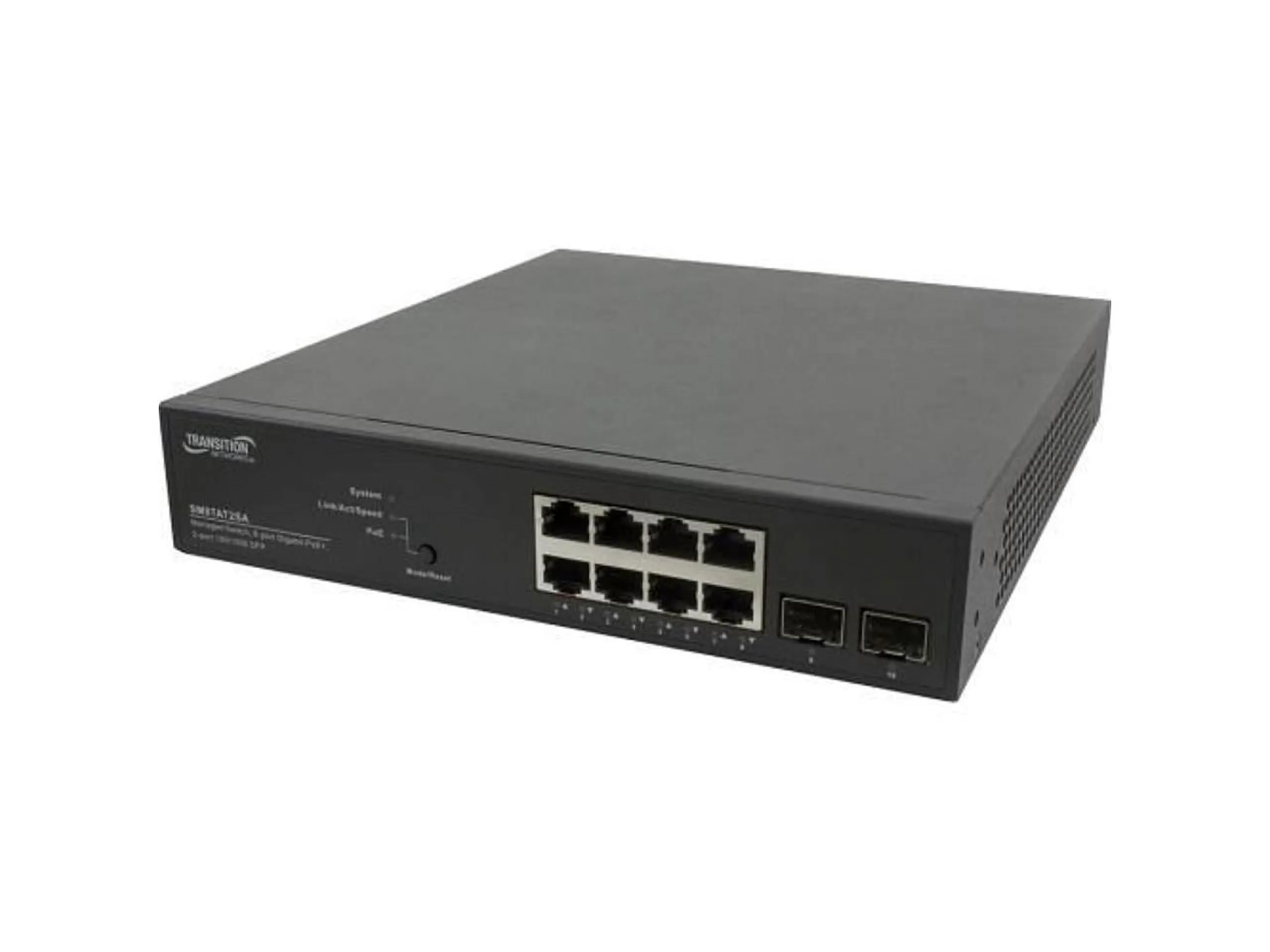 Transition Networks SM8TAT2SA-NA - Switch - managed - 8 x 10/100/1000 (PoE+) + 2 x 100/1000 SFP - desktop - PoE+ (130 W) - AC 100 - 240 V