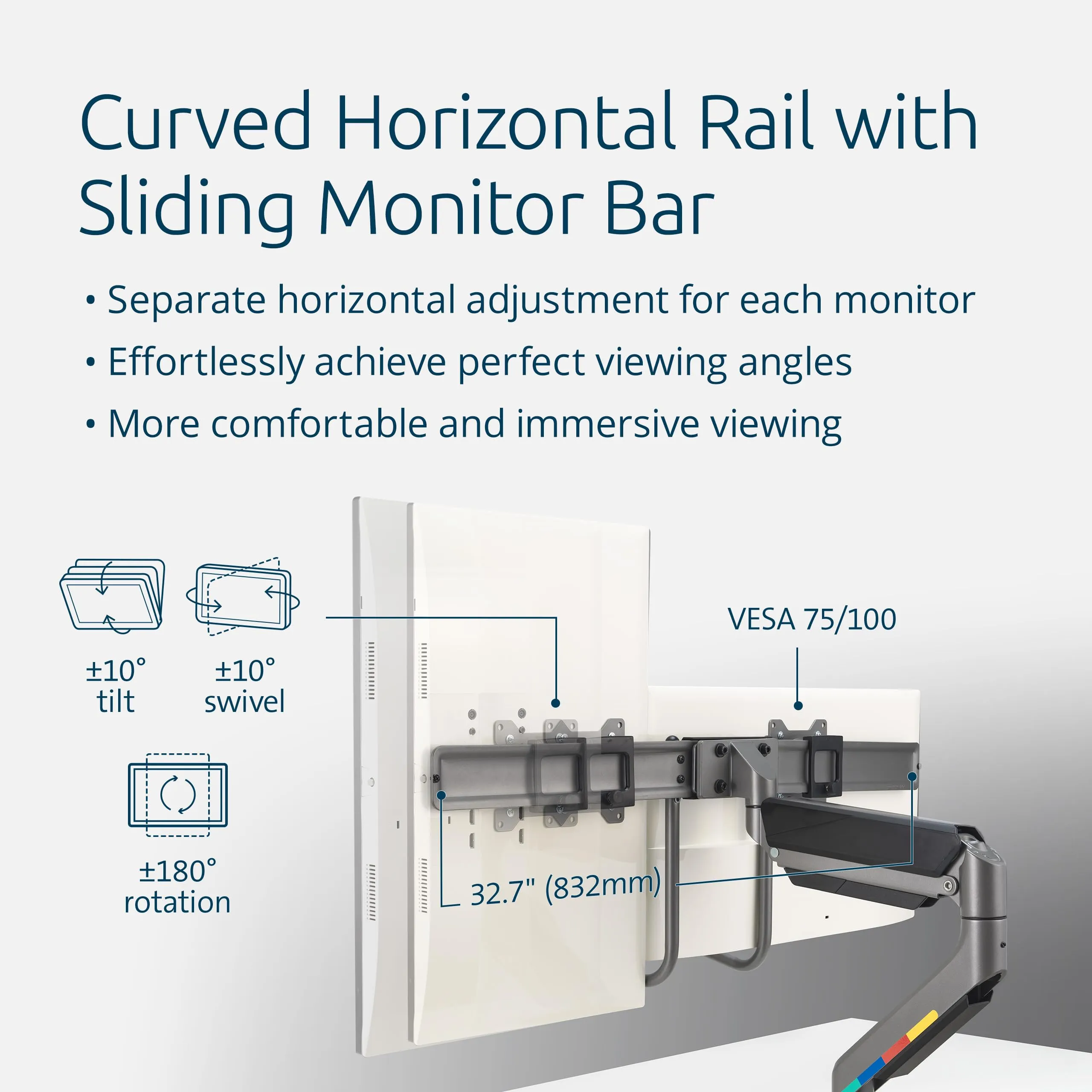 - Supports independent horizontal adjustments for each monitor, enhancing viewing comfort.
