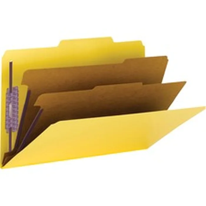 Smead SMD 19034 Smead Safeshield Fasteners 2 Divider Classification Folders Legal 8 12 X 14 Sheet Size 2 Expansion 2 Fastener Capacity For Folder 25 Tab Cut Right Of Center Tab Location 2 Dividers 25 Pt. Folder Thickness Pressboard Yellow Recycled 10 Box