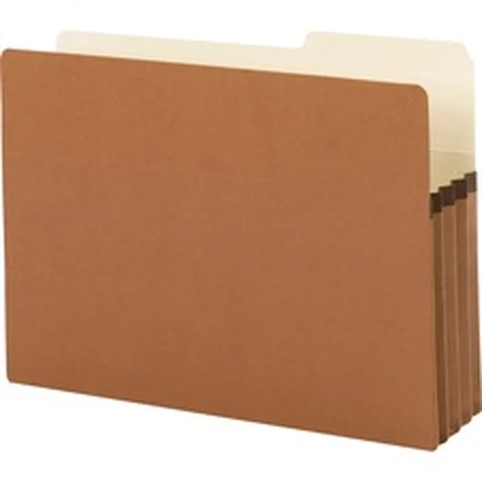 Great for managing bulky records, these sturdy file pockets feature an accordion-style design that allows expansion up to 3-1/2". Durable, rollover Tyvek reinforcement at the top of the 6-1/2" sides makes the sides of these pockets virtually tearproof. Tabs are 2/5 cut in the right position. Redrope material contains recycled material.