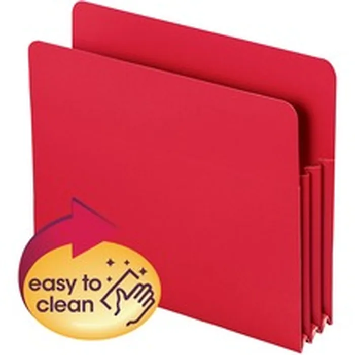 Poly File Pockets offer strong, heavyweight polypropylene construction and a 3-1/2" expansion to hold lots of paperwork. Use bright hues for color-coding. Drop-front panels provide easy access to letter-size contents. Design also features 6" high, matching color gussets and top corners that are rounded, front and back. Acid-free poly material is tear-resistant, water-resistant and easy to clean.