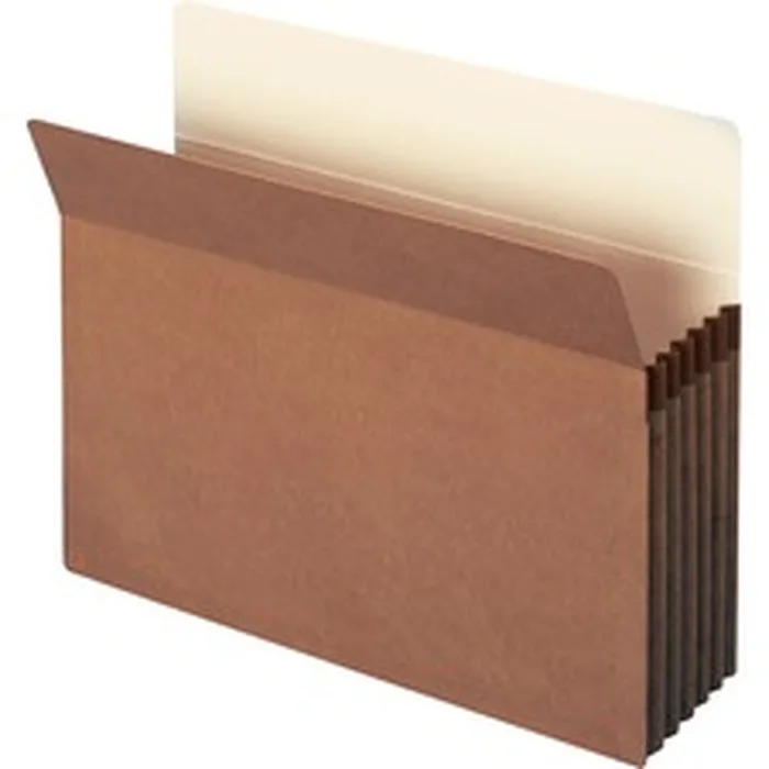 Great for managing bulky records, these sturdy file pockets feature an accordion design to hold up to a 5-1/4" thick stack of letter-size documents. Durable, tear-resistant reinforcement at the top of the gussets makes the sides of these pockets virtually tearproof. Straight-cut tabs offer plenty of labeling room. Other features include 12-1/2 point redrope back with 11 point manila liner, rounded top corners, 6-1/2" high redrope gussets and double-thick, 9 point redrope front.