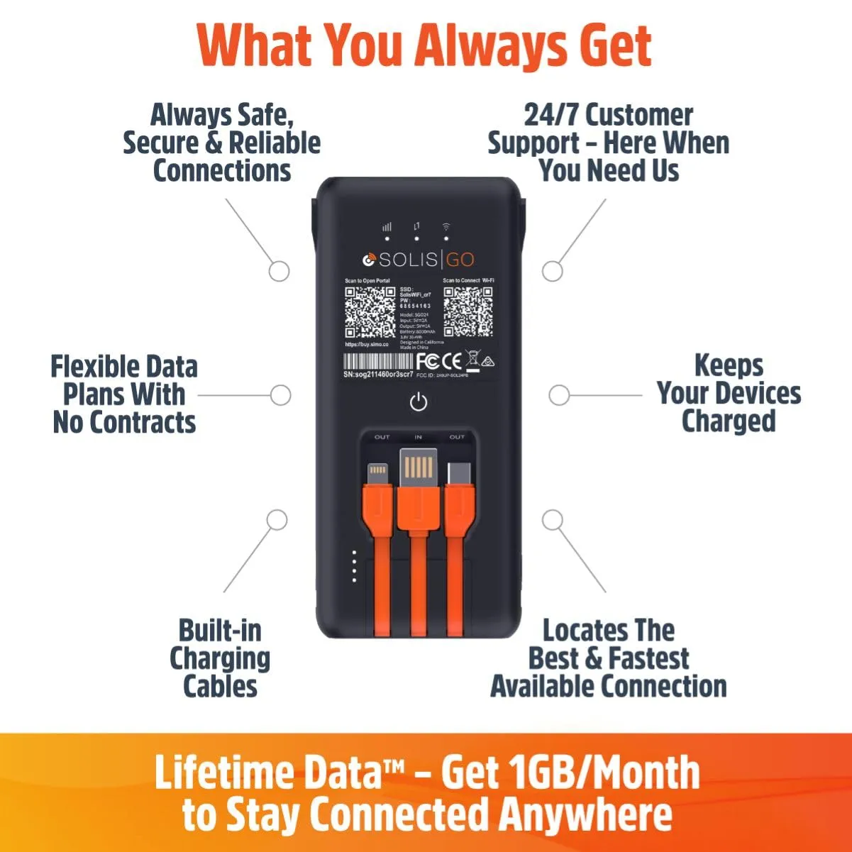 Simo, SSGPB001 Solis Go 4g Lte Hotspot And Power Bank With Builtin Usba Usbc And Lightnin