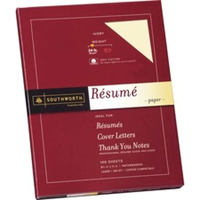 Resume paper is made of 100 percent cotton for a distinctive crispness and lasting impression. Endorsed by the National Resume Writers Association, 24 lb. sheets have a wove finish and are acid-free, lignin-free, watermarked and date-coded. Use in laser printers, inkjet printers and copiers. Resume paper includes handy resume writing guide.