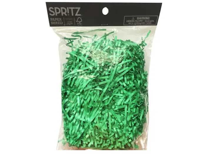 This Spritz 1.5 oz Green Shredded Paper Filler is perfect for adding a touch of color to your gift bags and special occasions. Ideal for Easter baskets, birthday gifts, and holiday celebrations, this shredded paper is crafted from quality green paper, cut into narrow strips that resemble grass.