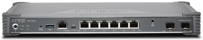 The Juniper SRX300 Services Gateway is a versatile security appliance designed to provide robust protection for network environments. It features 8 Gigabit Ethernet ports and supports various protocols including HDLC, Frame Relay, PPP, MLPPP, and MLFR.