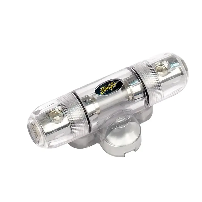 The Stinger Inline AGU Fuse Holder is designed to protect your audio system by providing a reliable and safe way to install fuses. This versatile fuse holder accommodates both 4 and 8 gauge wires, making it a perfect choice for various installations.