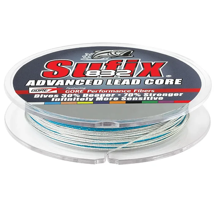 Experience the innovation of the Sufix 832 Advanced Lead Core, the first lead core line that combines high-performance HMPE and Gore® fibers. This unique construction around a lead core wire allows for superior sinking performance, delivering a line that is 30% deeper and 70% stronger compared to traditional lead core options. Designed for anglers who demand the best, this line offers unmatched sensitivity, abrasion resistance, and UV protection to elevate your fishing experience.