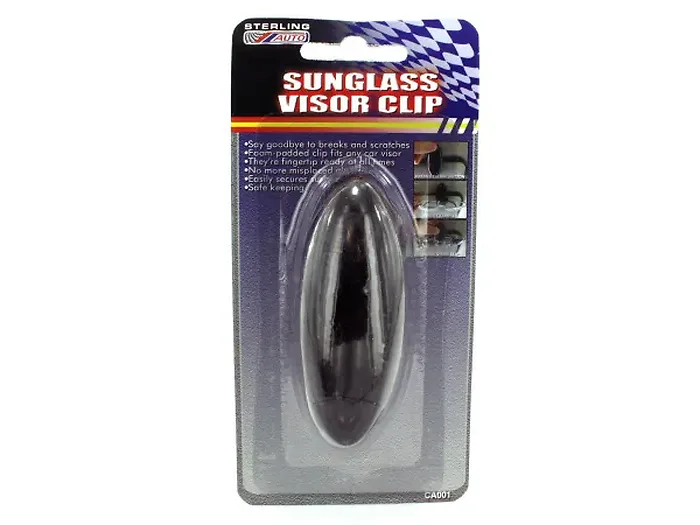 Say good-bye to breaks and scratches with this convenient Sunglass Visor Clip featuring a foam padded clip that fits any car visor, making your sunglasses fingertip ready at all times. Measures approximately 3.25" x 0.75". Comes packaged in a blister pack.