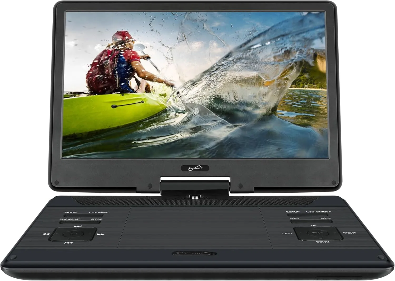 Experience your favorite movies and music on the go with our 14" Portable DVD Player. Featuring a wide LCD swivel display, this player supports various formats including DVD, CD, MP3, and more.