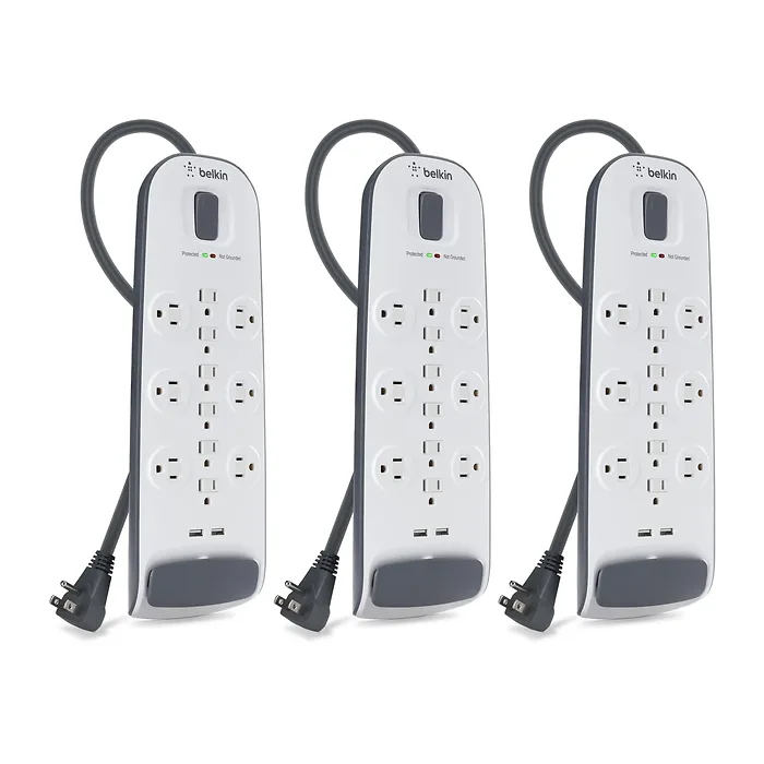The 3-Pack 12-Outlets USB Surge Protector offers a safe and efficient way to protect your devices from power surges and spikes. With a robust 3000 Joules of surge protection, this multi-pack is perfect for your home or office setup.
