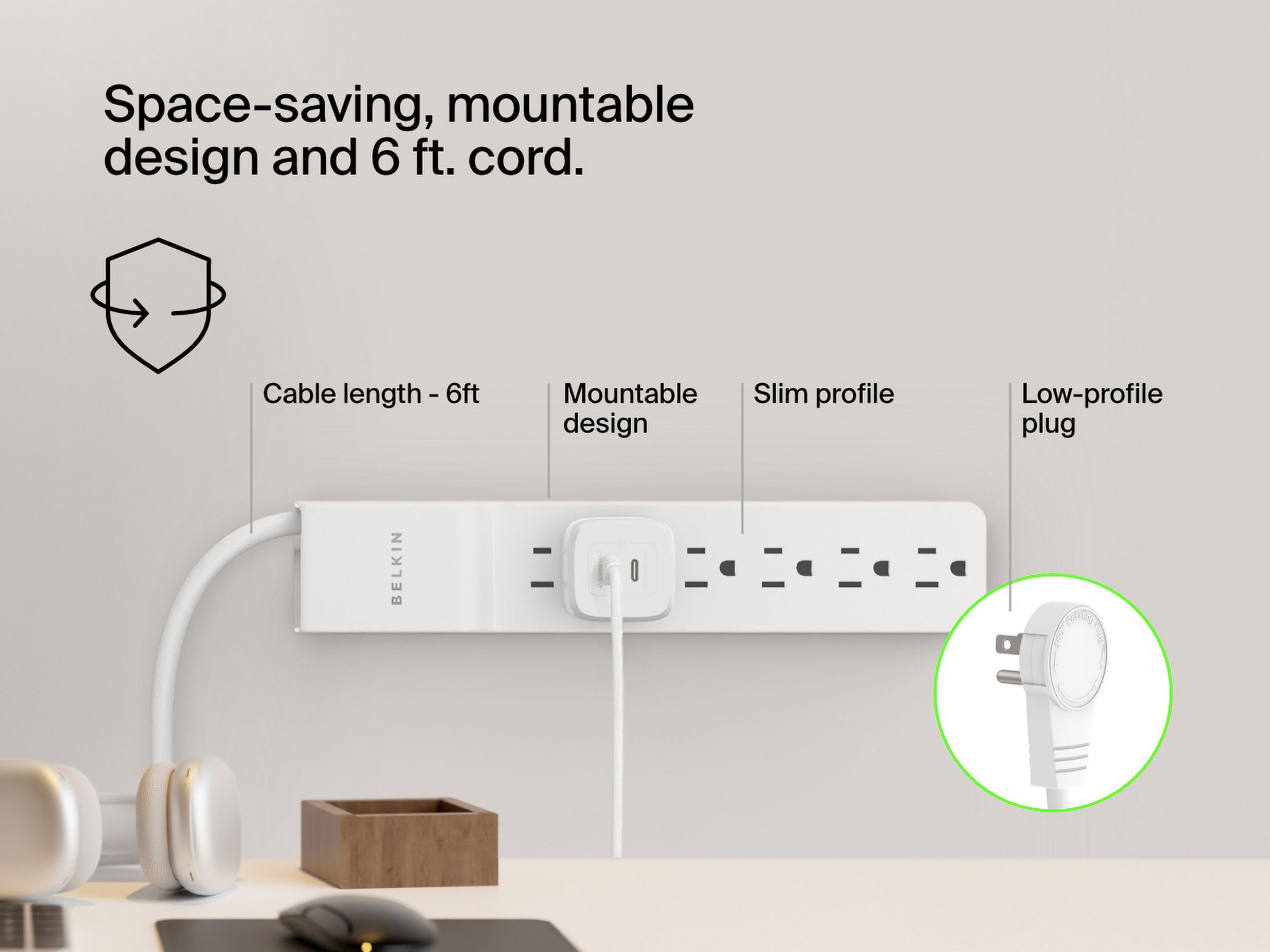 - 6 outlets for multiple devices
