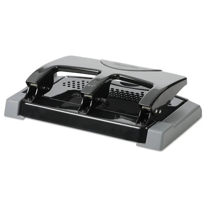 The Swingline SmartTouch 3-Hole Punch is designed for efficient and convenient multipurpose use. It features a sleek design with ergonomic handles that require less effort to operate, allowing you to punch up to 45 sheets at once.