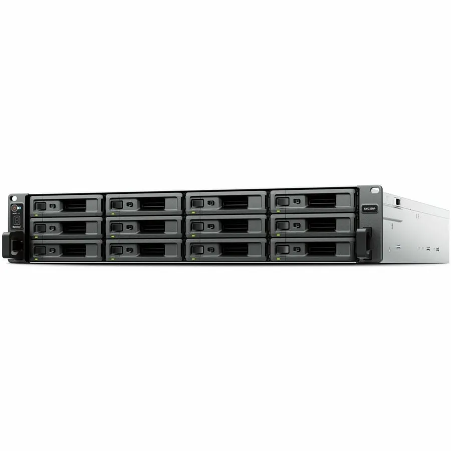 The Synology RX1225RP is a 12-bay 2U expansion unit designed to seamlessly expand your Synology NAS storage capacity. Built for reliability and performance, this diskless unit allows users to easily increase their storage needs for data-intensive applications.