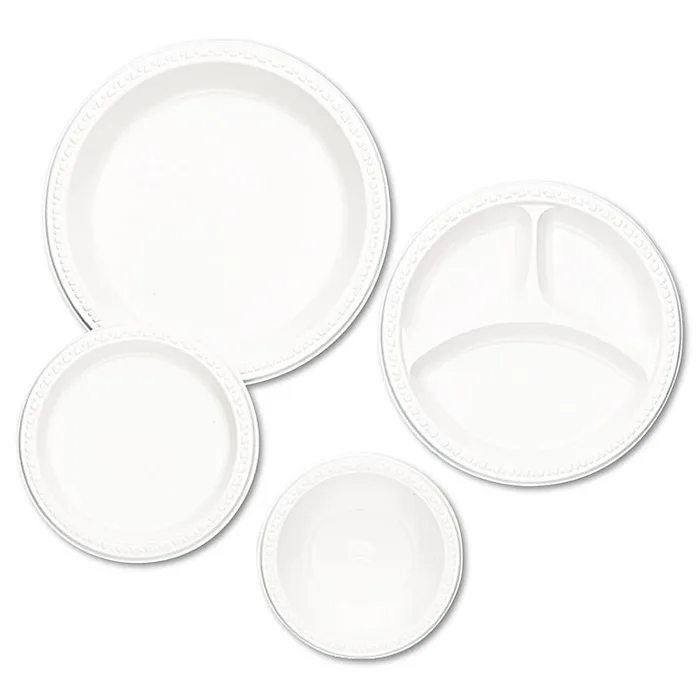 Plastic Dinnerware, Plates, 9" Dia, White, 125/pack