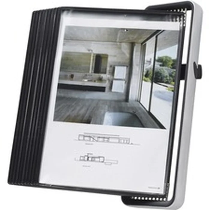 Tarifold TFI V714527 Tarifold Veo Wall Display Unit 10 Black Pockets 10 Pockets Support Letter 8.50 X 11 A4 8.27 X 11.69 Media Wirereinforced Pivot Magnetic Silver Frame Black Pocket Black Base Steel Wire Aluminum Base Steel Frame Polyvinyl Chloride Pvc Pocket 1 Each