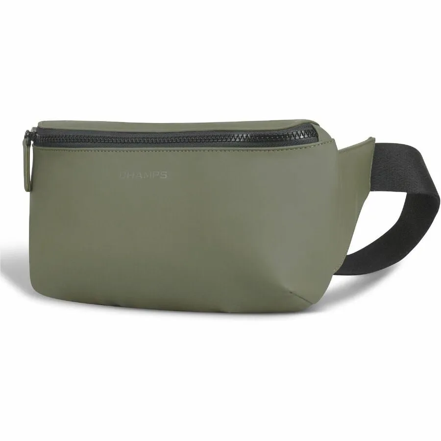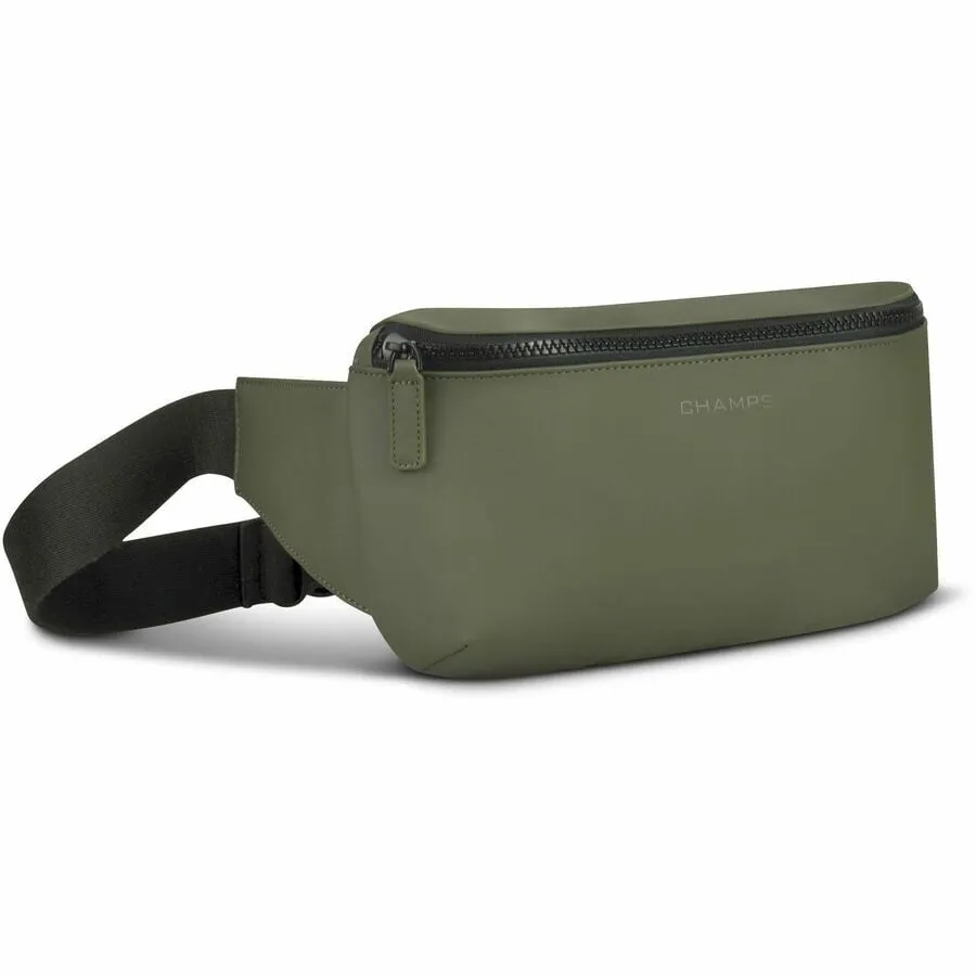 Introducing the Waist-pack from the Onyx Collection. Designed for the active individual and perfect for your keys, phone, wallet, and small accessories. Made with premium water-resistant PU material to ensure both durability and a sleek, modern look. It features a specialized RFID pocket to protect your sensitive information from digital theft, giving you peace of mind whether you're running errands, traveling, or out for a jog. This Waist-pack includes an adjustable strap with a secure buckle, allowing you to customize the fit for maximum comfort and convenience. Its compact design ensures that you can carry your essentials without feeling weighed down, making it an ideal accessory for a busy, on-the-go lifestyle. Combining functionality with a contemporary aesthetic, the Champs Waist-pack from the Onyx Collection is the perfect addition to your accessory lineup.