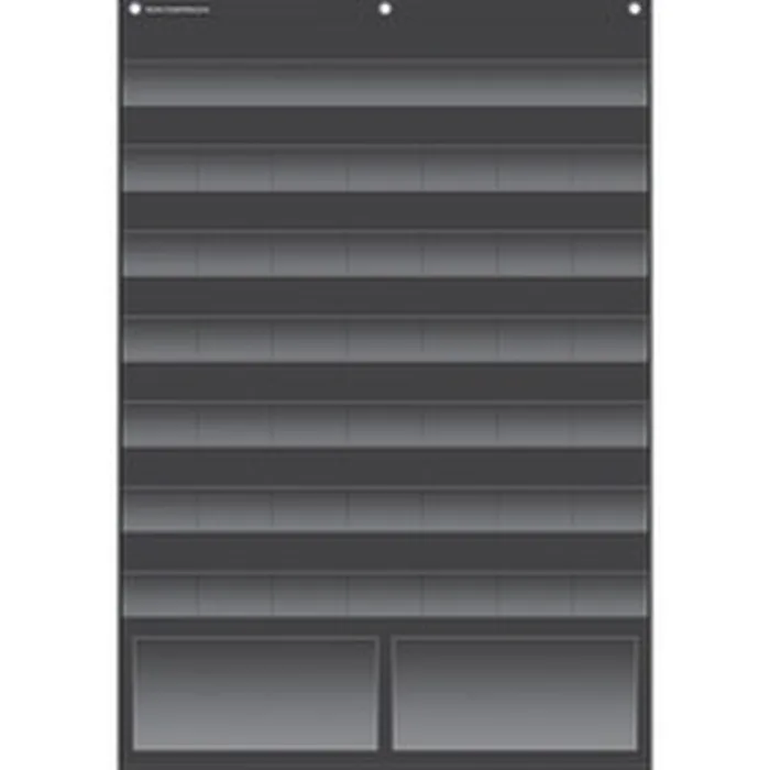 Calendar pocket chart features a bold, solid color to help young learners stay focused on your displayed items. 45 transparent pockets with open tops allow you to quickly insert and remove materials as needed. Its lightweight construction hangs from sturdy, metal grommets for simple attachment and removal. The durable design holds up through daily use to keep your items displayed all year long.
