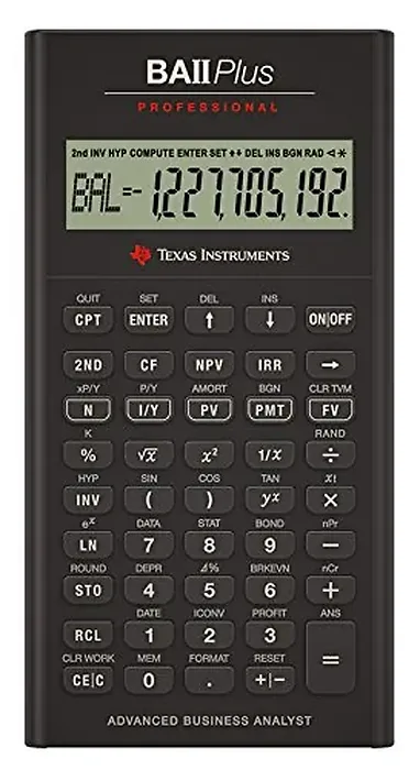 The BA II PLUS PROFESSIONAL features even more time-saving calculations to make short work of complex equations. It's ideal for finance, accounting, economics, investment, statistics, and other business classes, as well as on the Chartered Financial Analyst (CFA®) exam.