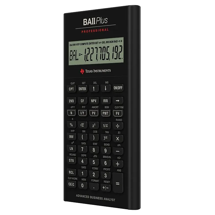 The BA II PLUS PROFESSIONAL features even more time-saving calculations to make short work of complex equations. It's ideal for finance, accounting, economics, investment, statistics, and other business classes, as well as on the Chartered Financial Analyst (CFA®) exam.